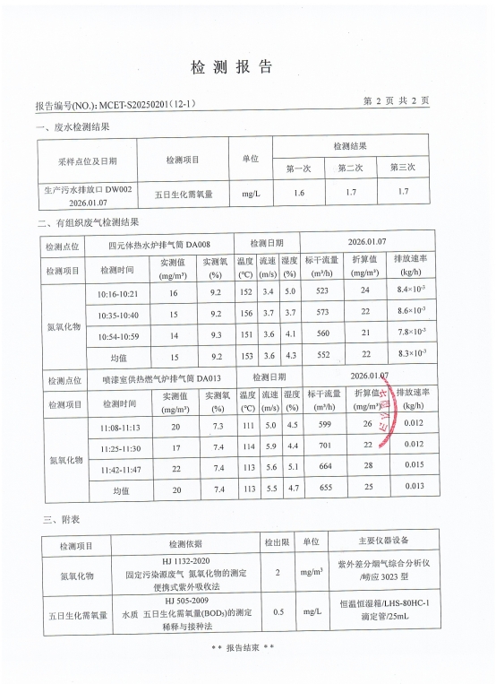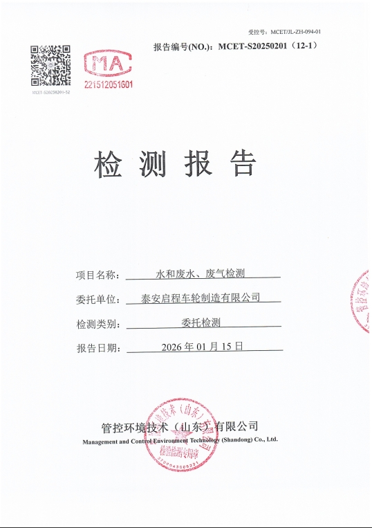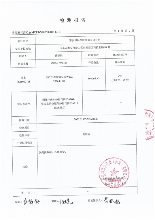 泰安啟程車輪制造有限公司2026年1月份環(huán)境污染物排放檢測(cè)報(bào)告