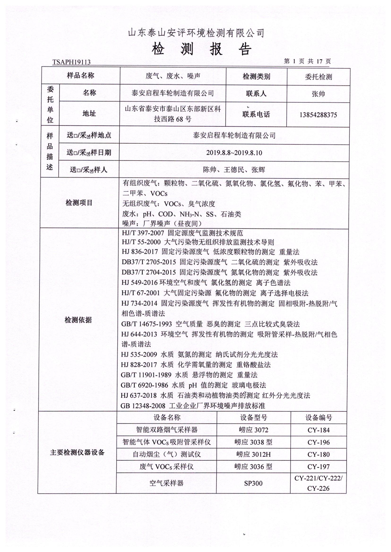 根據(jù)《中華人民共和國環(huán)境保護法》、《企事業(yè)單位環(huán)境信息公開辦法》有關規(guī)定,現(xiàn)將泰安啟程車輪制造有限公司環(huán)境信息公開如下: