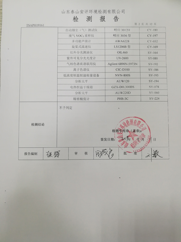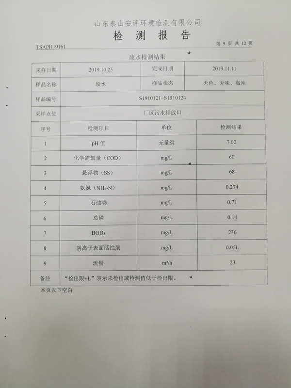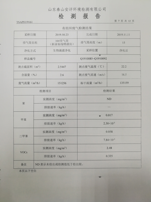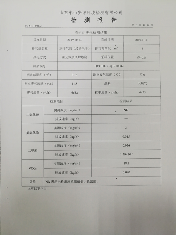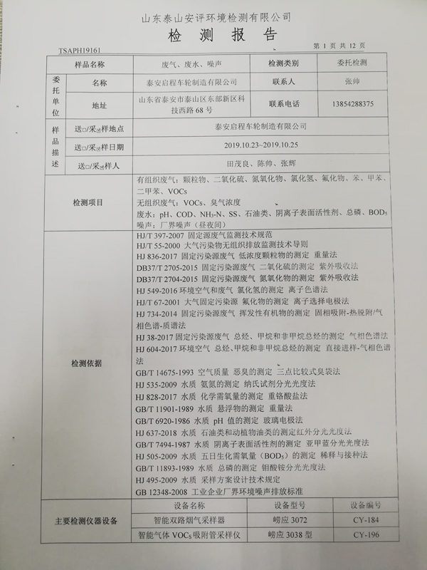 泰安啟程車輪制造有限公司2019年10月份檢測(cè)報(bào)告