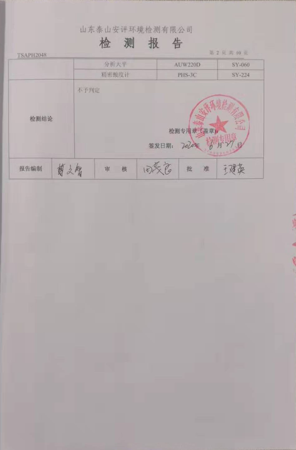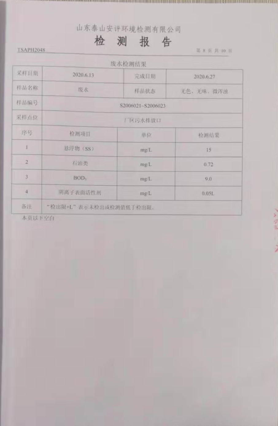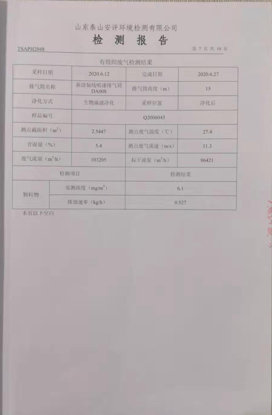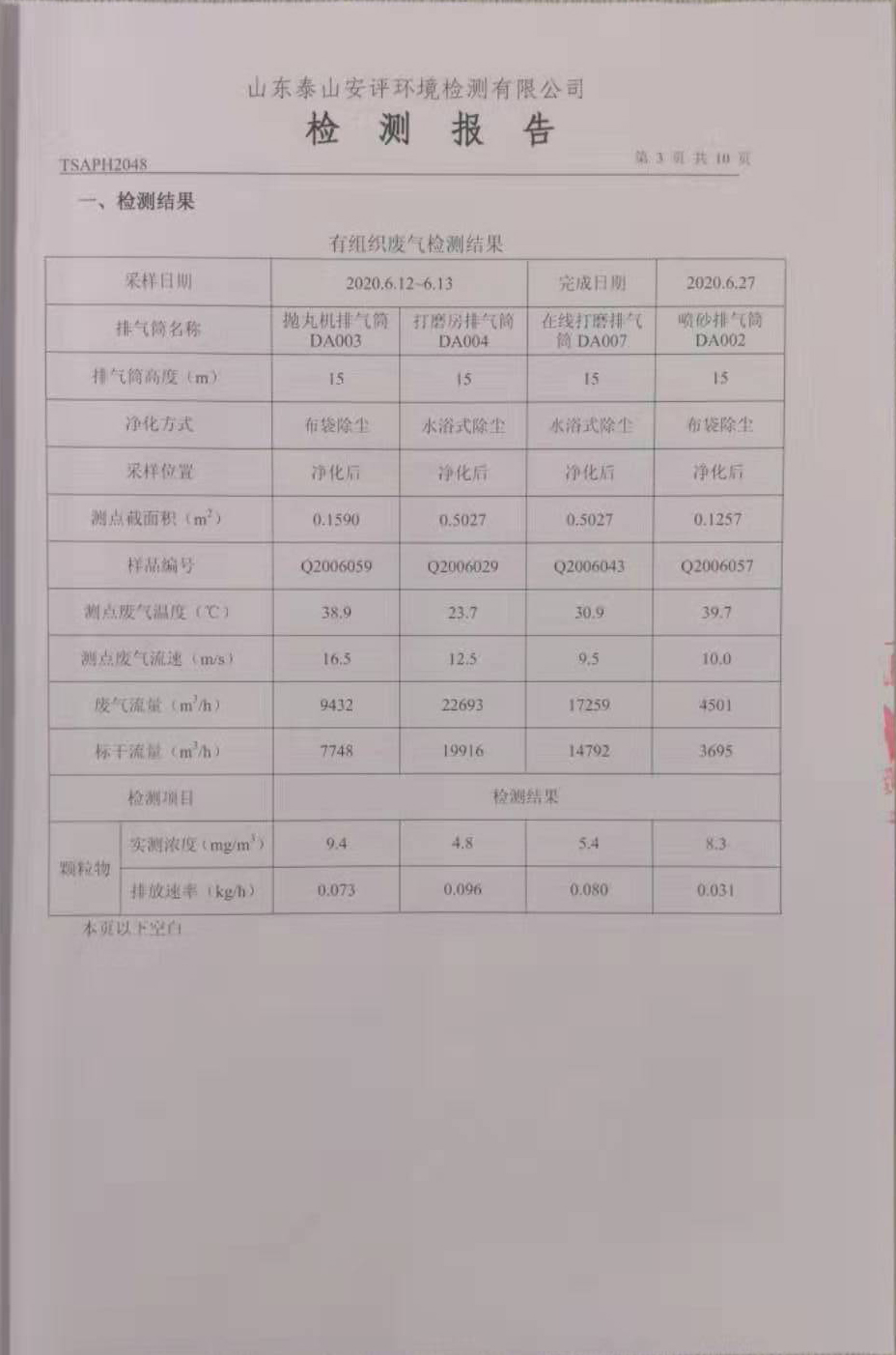 泰安啟程車輪制造有限公司2020年6月份環(huán)境污染物排放檢測報(bào)告