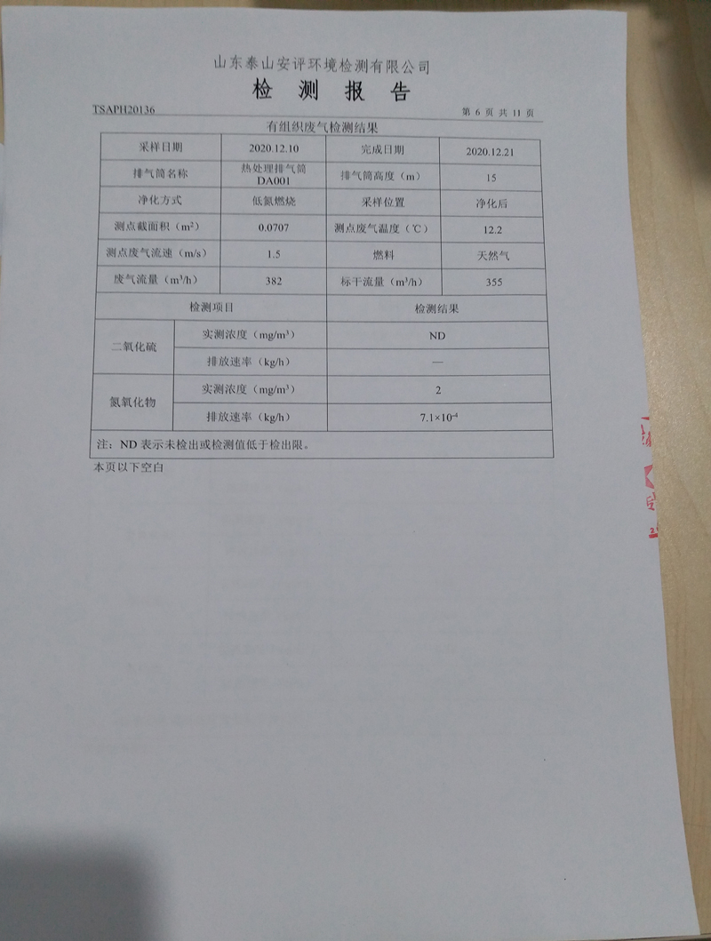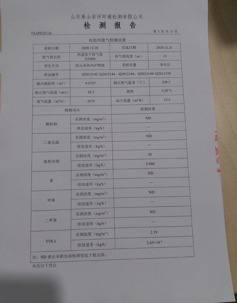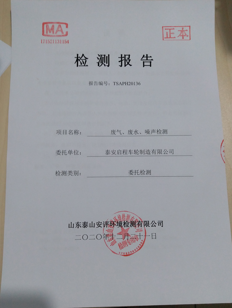 泰安啟程車輪制造有限公司2020年12月份環(huán)境污染物排放檢測(cè)報(bào)告