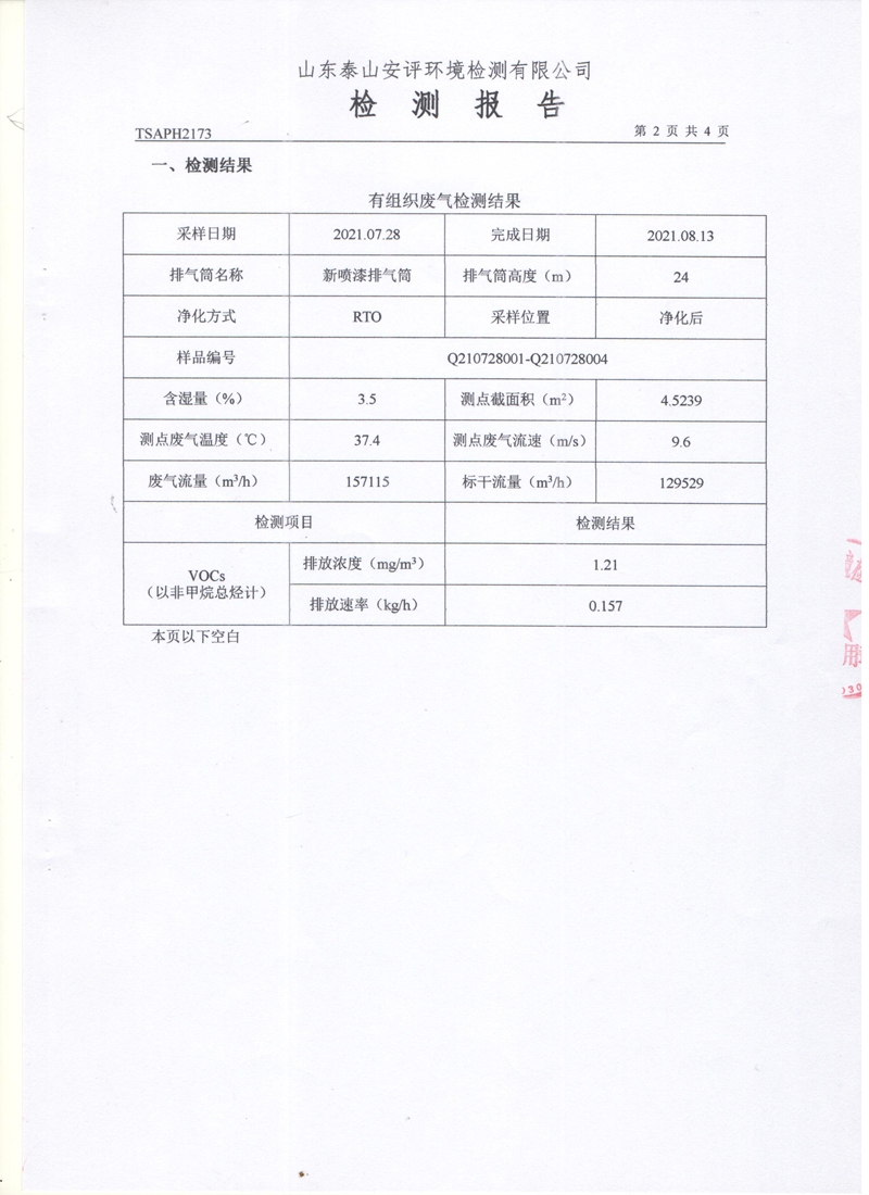 泰安啟程車輪制造有限公司2021年7月份環(huán)境污染物排放檢測報告