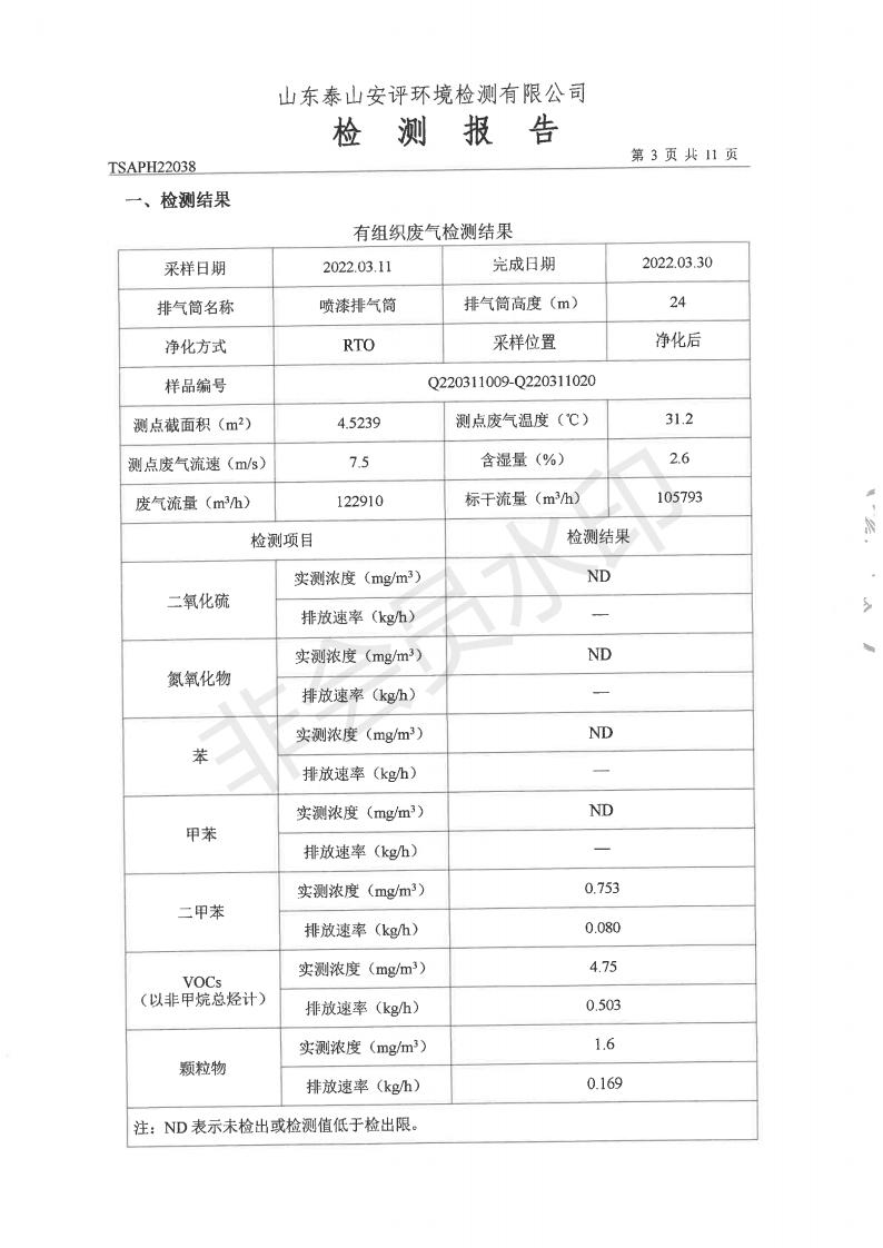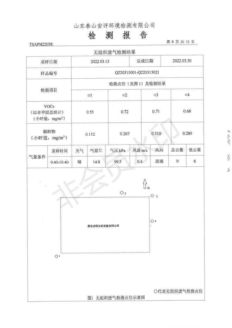 泰安啟程車輪制造有限公司2022年3月份環(huán)境污染物排放檢測報告
