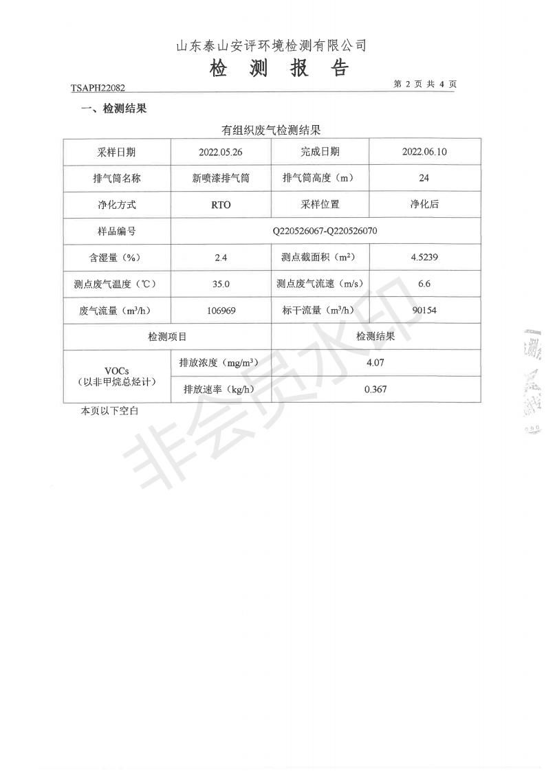泰安啟程車輪制造有限公司2022年5月份環(huán)境污染物排放檢測報告
