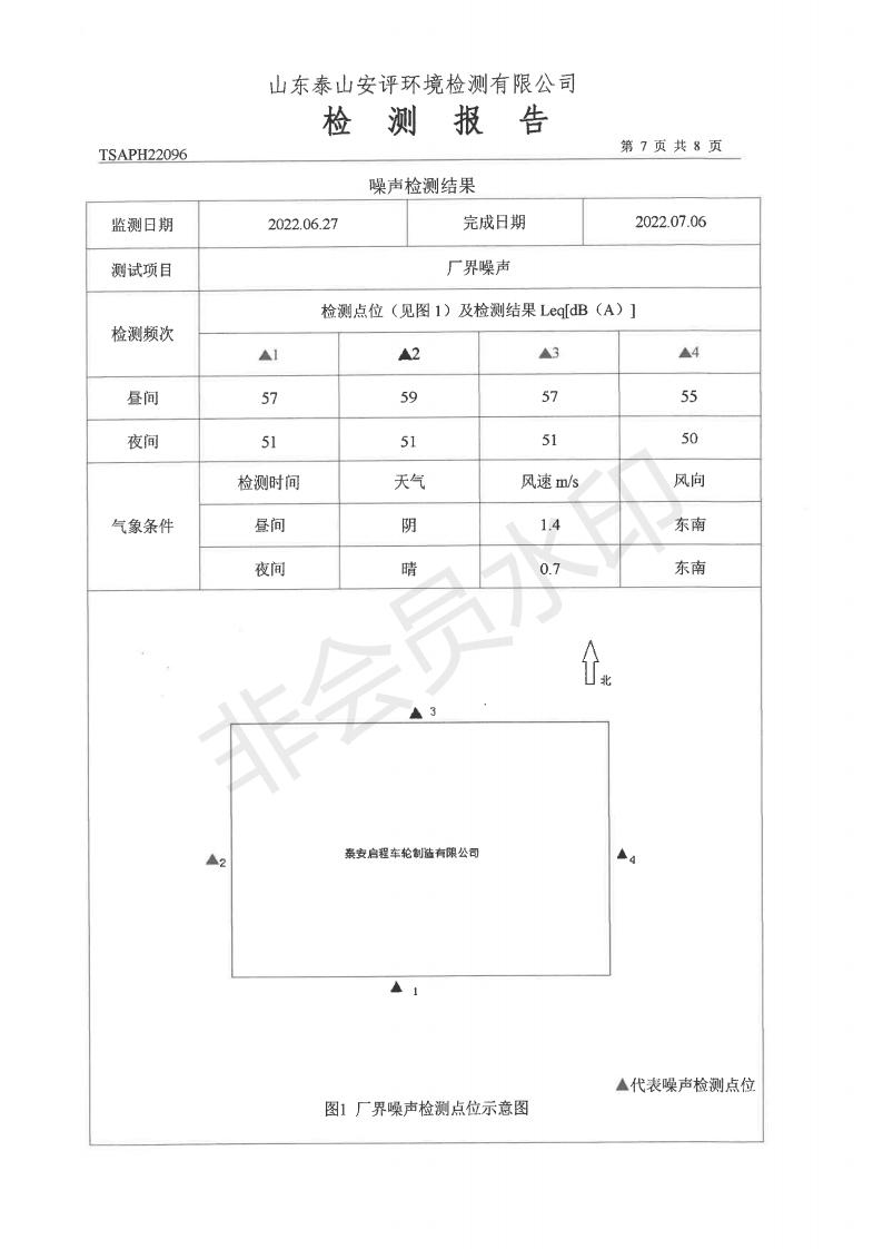 泰安啟程車輪制造有限公司2022年6月份環(huán)境污染物排放檢測(cè)報(bào)告