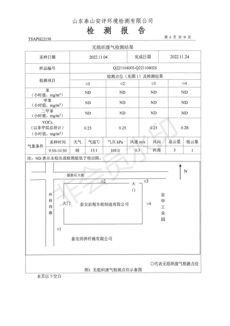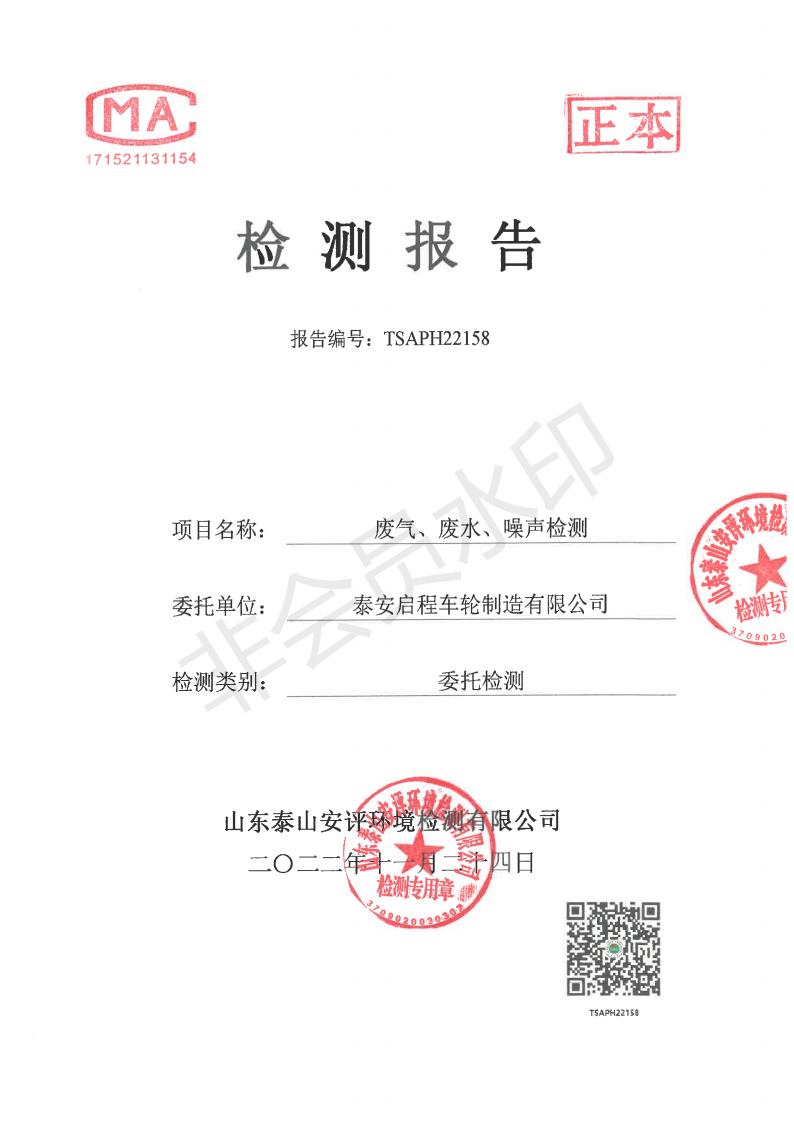 泰安啟程車輪制造有限公司2022年11月份及4季度環(huán)境污染物排放檢測報(bào)告