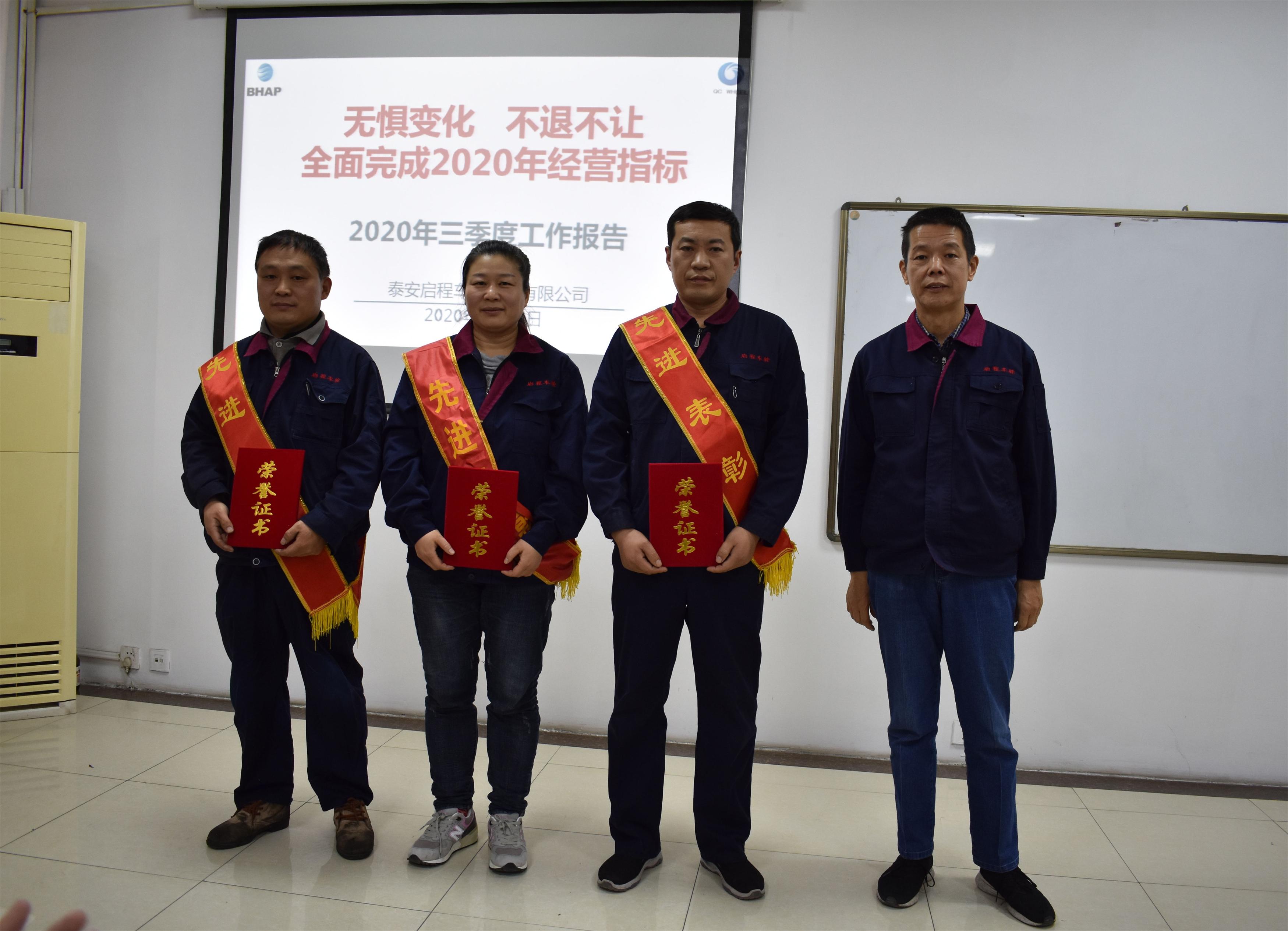 On behalf of the company’s leadership team, the company’s general manager Shen Zaigen made a work report titled "No fear of change, no retreat, and full completion of 2020 business indicators". Shen Zaigen, general manager of safety and environmental protection, KPI indicators, output quality, order sales, , Business highlights, party and mass work, problem countermeasures, etc., made a detailed summary of the work in the third quarter, and made specific arrangements for the completion of the fourth quarter's business indicators, market development, new technologies, new processes, and second-phase projects. General Manager Shen Zaigen specifically emphasized that safety and environmental protection must not be relaxed, and safety must be normalized. Employees must always pay attention to production safety, protect themselves, and ensure safe production.