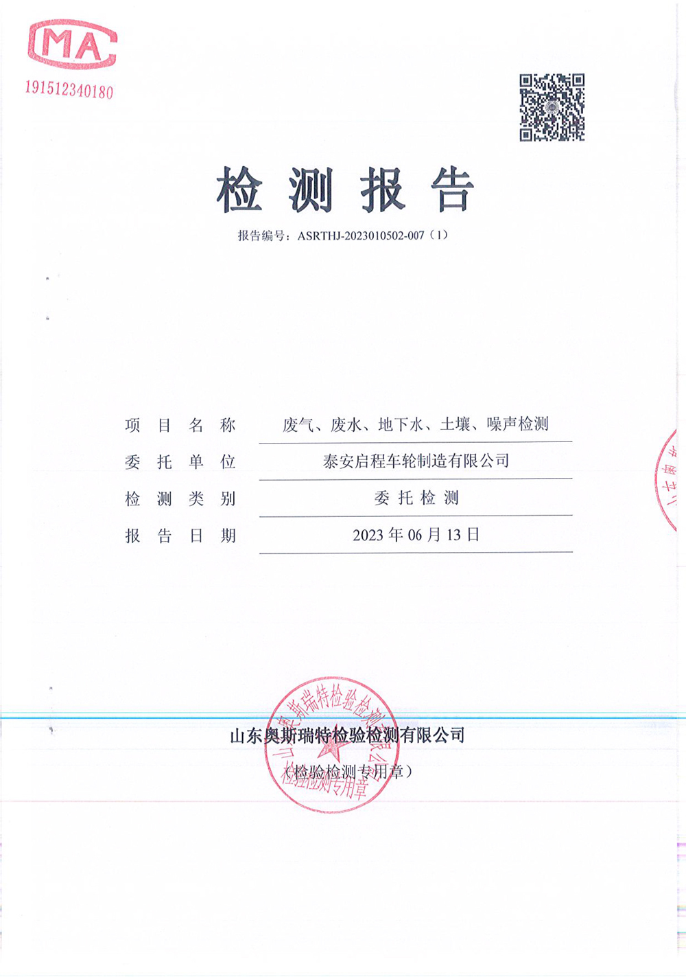 泰安啟程車輪制造有限公司2023年6月份環(huán)境污染物排放檢測報告